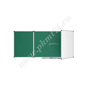 Доски школьные трехэлементные в наличии в каталоге в двух вариантов. Это приспособления для письма с темно-зеленой матовой поверхностью без отблеска. Такие предметы подходят для использования мела.