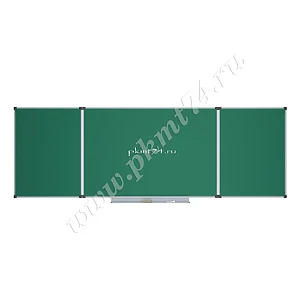 Доска школьная трехэлементная зеленая 32 З используется в учебных классах для работы мелом. Ее рабочее полотно изготовлено из обработанного листа стали, стойкого к воздействиям химических веществ и повреждениям. Чтобы улучшить эксплуатационные свойства предмета, используют обрамление. По всему периметру доска усилена металлическим профилем, покрытым полимерным составом. Края каждого элемента защищают заглушки из пластика.