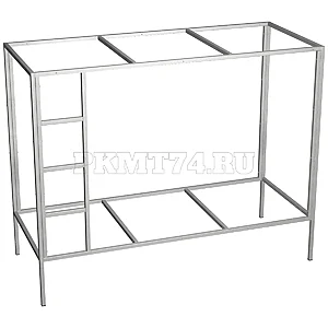 Каркас кровати двухъярусной с лестницей представляет собой сборно-разборную основу для изготовления полновесного ложе. На основании данного каркаса можно сделать или заказать готовую комфортную двухуровневую кровать производственной компании «Мебельные технологии». Для изготовления корпуса использована прочная металлическая профильная труба с габаритами 25x25x1,5 мм. Заданные производителем габариты каркаса составляют 1900x800x1500 мм, но они не являются окончательными и могут корректироваться по желанию заказчика.