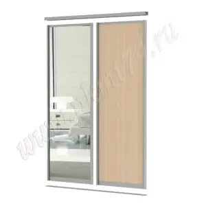 Комбинированные двери для шкафа купе, состоящие из листа ЛДСП и зеркала, предлагаются для следующих размеров проема: 1500×2500 мм; 1700×2500 мм. Указанные габариты соответствуют размерам проема в шкафу. В комплект входят две двери.