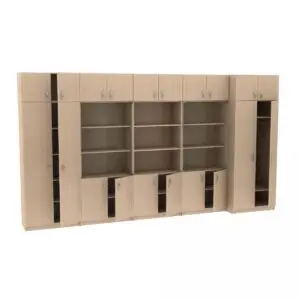 Набор из пяти шкафов с антресолями – представляет собой внушительную многофункциональную конструкцию, которая идеально дополнит школьную аудиторию, укомплектованный офис или домашнюю библиотеку.
