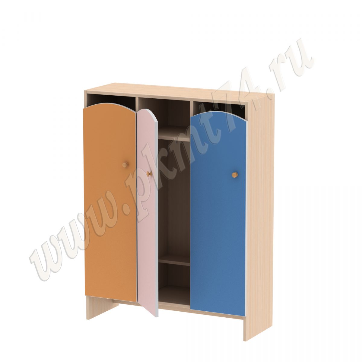 Дверца каждого отделения надежно фиксируется на петлях, а верхняя полка для головных уборов прочно закреплена. Шкаф для детской одежды производственной компании «Мебельные технологии» изготовлен из качественного ЛДСП в соответствии со стандартами качества, безопасен и вмещает необходимое количество одежды, игрушек и иных вещей, необходимых ребенку. Так же обратите внимание на шкаф для детской одежды Волна 3 (модель МТ 17-97), сделанный в соответствии с ГОСТ, имеющий вентиляционную надставку в виде короба.