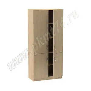Четырехдверный шкаф с полками для документов представляет собой универсальную систему хранения. Его можно использовать для складирования папок, архивов, различных офисных бумаг и необходимых в работе материалов. Внутреннее пространство шкафа разделено на пять вместительных секций, каждая глубиной около 400 мм и шириной 800 мм. Высота изделия составляет 1800 мм.